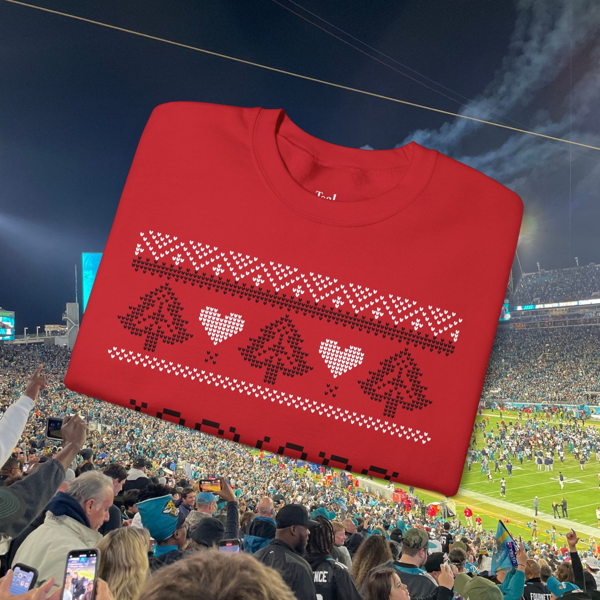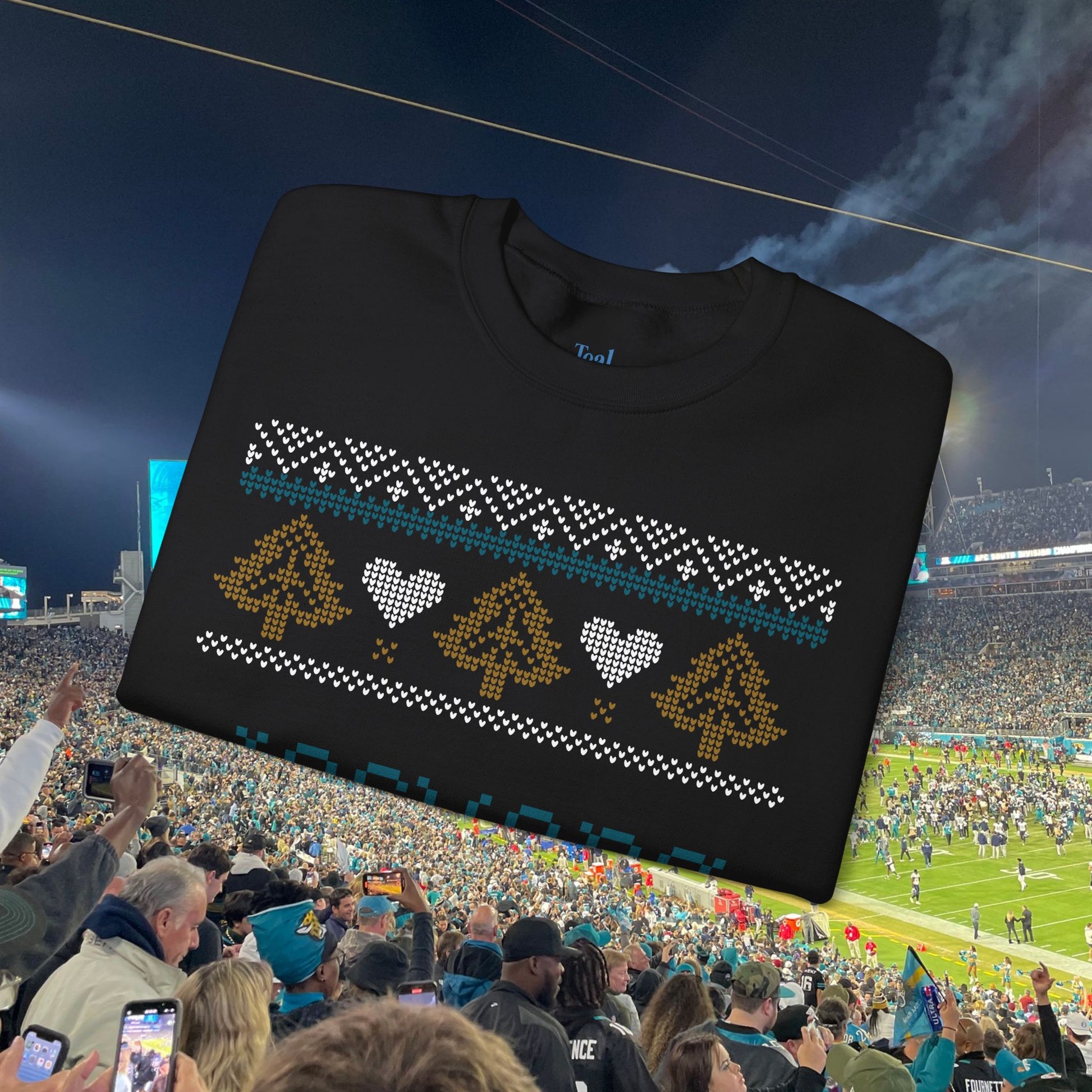 This Jacksonville fan favorite is back for another season! Embrace the festive spirit with this ugly Christmas sweater inspired Jaguars sweatshirt, perfect for tailgating, winter game days, and holiday parties.