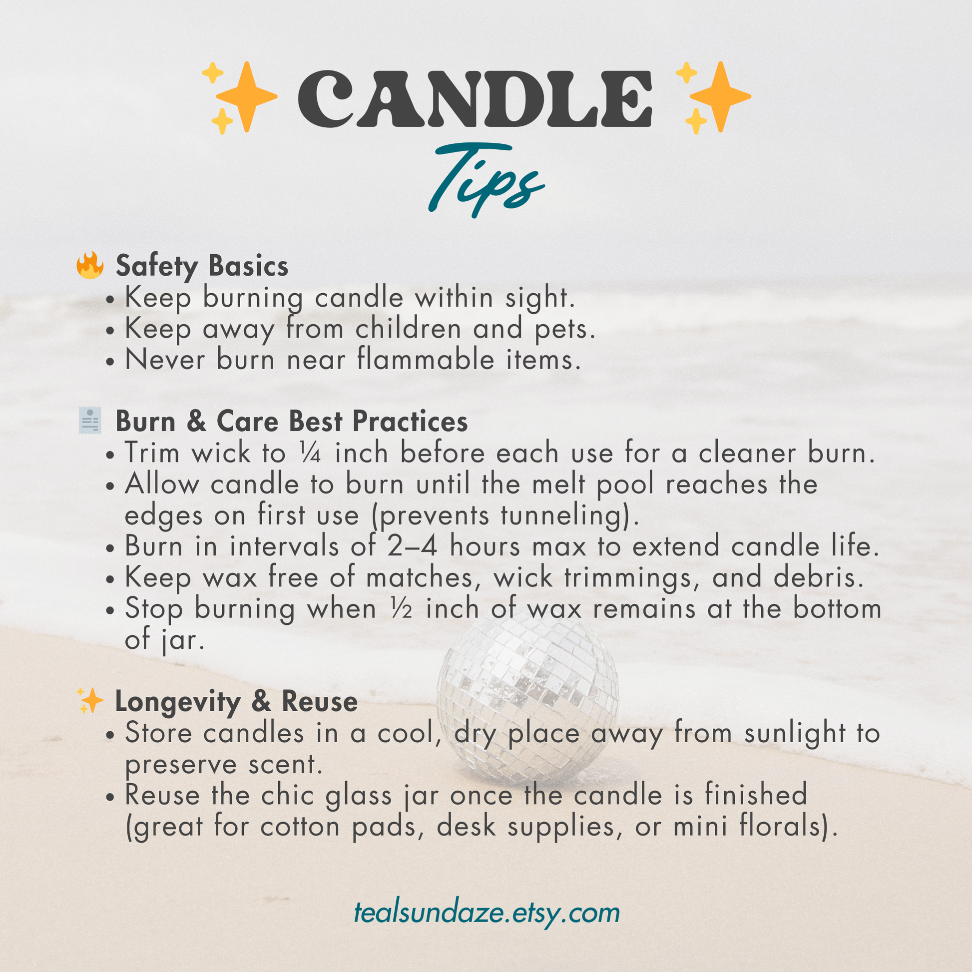 Keep burning candle within sight. Keep away from children and pets. Never burn the candle near flammable items.